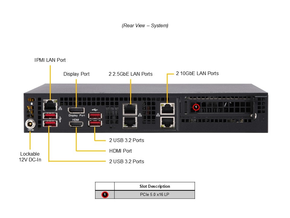 • 1 PCIe 5.0 x16 (in x16) LP slot