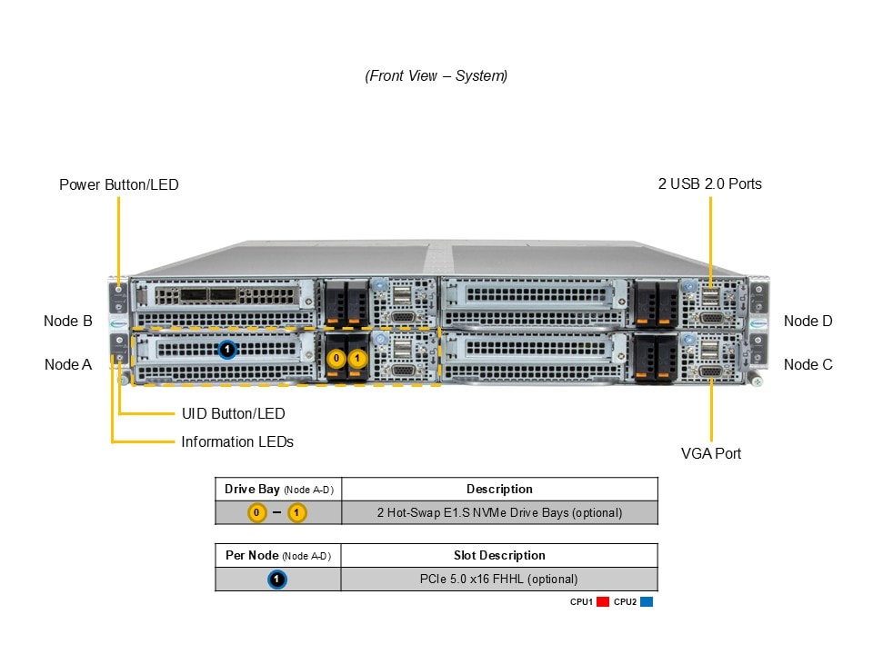 • 2 front hot-swap E1.S NVMe* drive bays