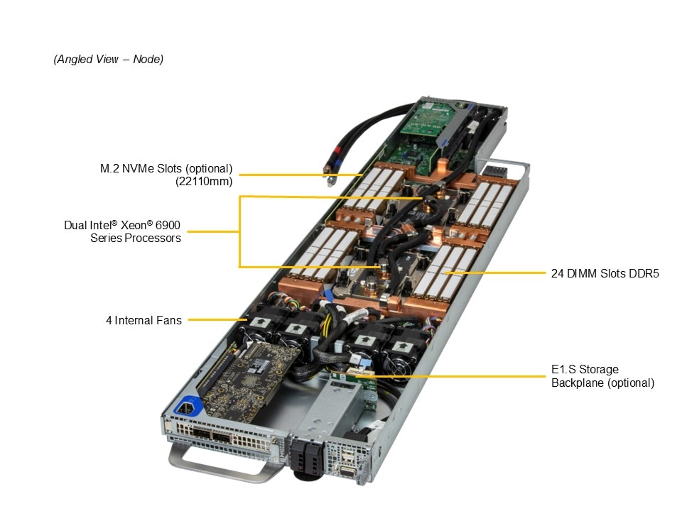 1. Dual Intel® Xeon® 6900 Series Processors with P-cores up to 500W with Advanced liquid cooling (Up to 95% heat capture)
