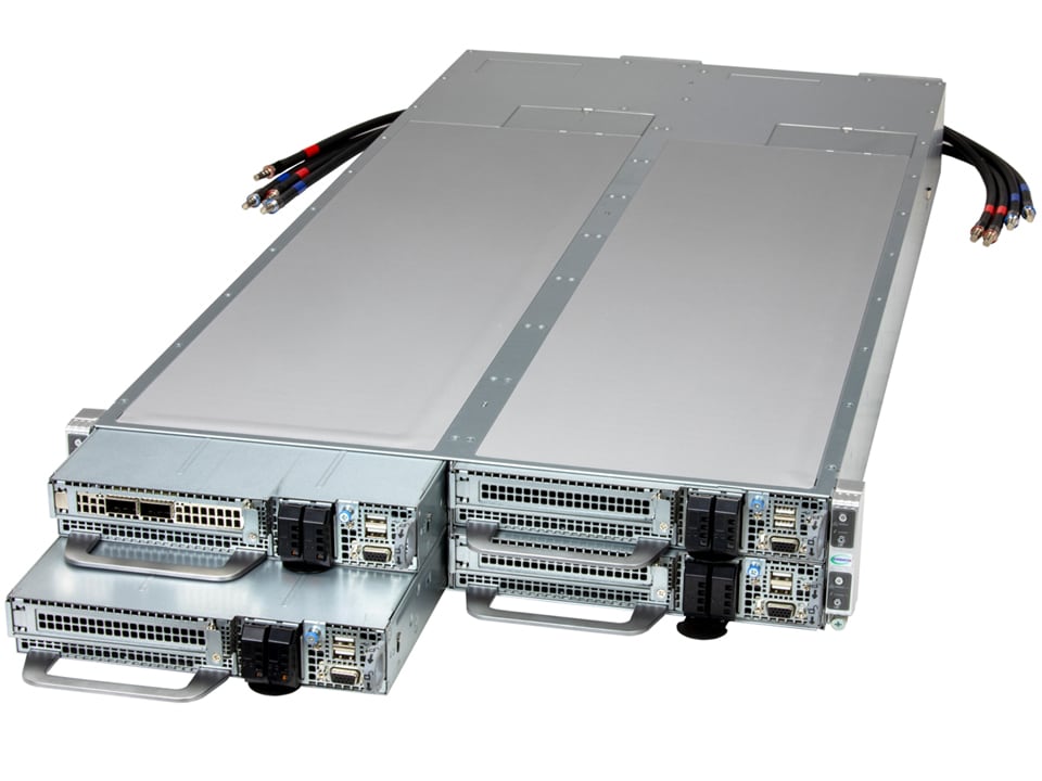 2U 4-Node FlexTwin™ with advanced liquid cooling (complete rack and onsite service are required)