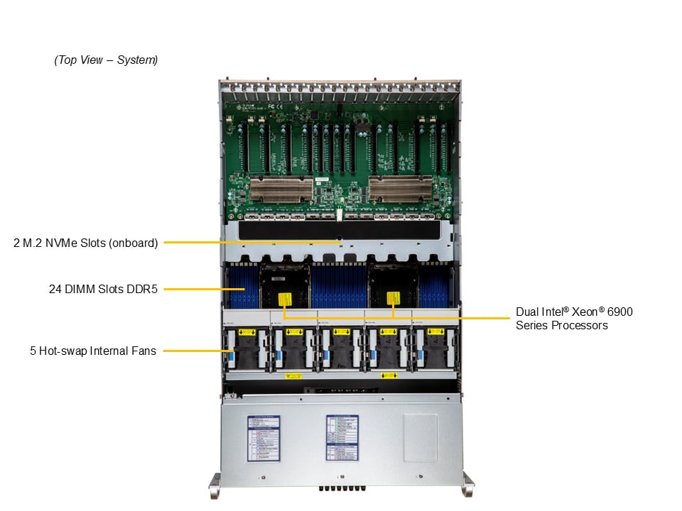 1. Dual Socket BR (LGA-7529) Intel® Xeon® 6900 series processors with P-cores up to 500W with air cooling