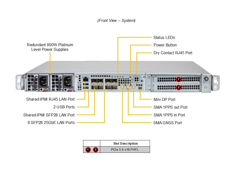 • 8 SFP28 25 GbE LAN ports (Intel® SOC) (IPMI shared on LAN port 1)
