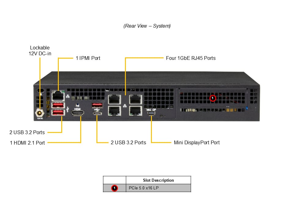 • 1 PCIe 5.0 x16 (in x16) LP slot