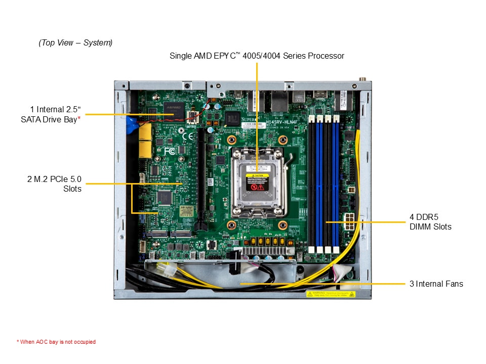 1. Single AMD EPYC™ 4004/4005 Series Processors up to 65W with air cooling