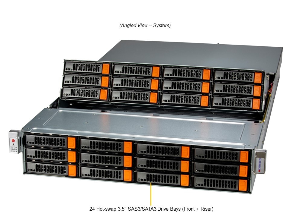 5. 24 3.5" Hot-swap SAS3/SATA3 drives, 4 x Rear SATA/NVMe Slots, 2x SATA/NVMe M.2 (form factor: 2280)