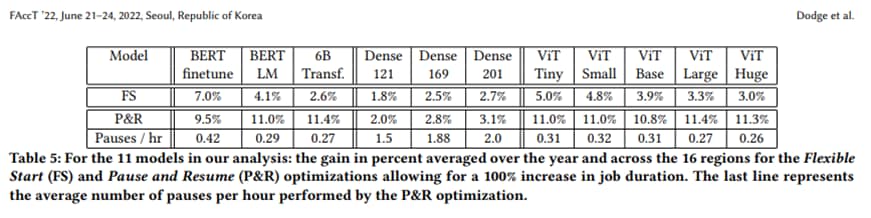 Efficient algorithms reduce carbon emissions by reducing energy needed to train AI models, such as, Approximate algorithms that provide good solutions to problems without guaranteeing the best possible solution, Or Data-driven algorithms that are trained on data. The table below shows the results of using two optimization algorithms: Flexible Start, that allows flexibility for AI workloads of shorter jobs, and Pause & Resume that pauses & resumes according to a Threshold, for longer jobs.