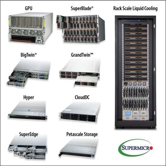 San Jose, Calif., Taipei, Taiwan, May 28, 2023 - Super Micro Computer, Inc. (Nasdaq: SMCI), a Total IT Solution Provider for Cloud, AI/ML, Storage, and 5G/Edge, continues to innovate with a broad range of servers to meet IT requirements for modern workloads. Supermicro’s Building Block Server® methodology enables a first-to-market delivery with the latest technology from Intel, AMD, and NVIDIA. Purpose built servers deliver exceptional performance for a wide range of AI, Cloud, and 5G workloads, from the data center to the edge.