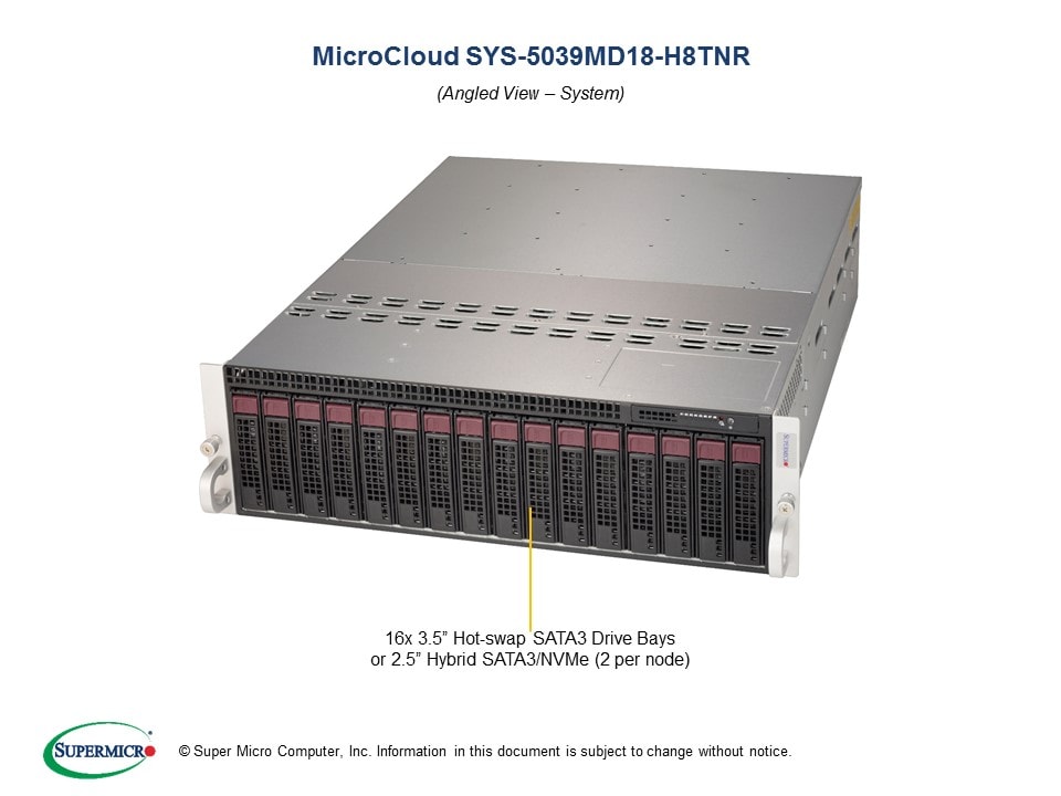 AOM-BPN-938NH, Backplane module for 8-node Microcloud system, 16xU.2, 2 per node, Dual PSU, Management LAN switch, chassis node ID.,HF,RoHS |