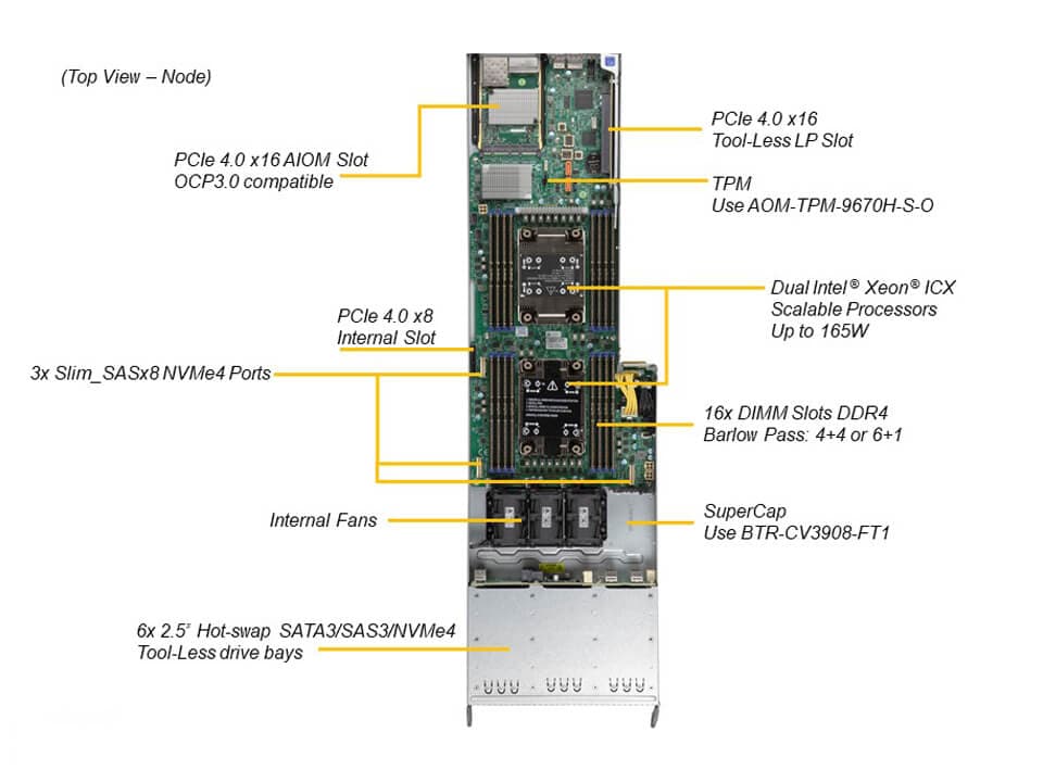Key FeaturesEight hot-pluggable systems (nodes) in a 4U form factor. Each node supports the following: