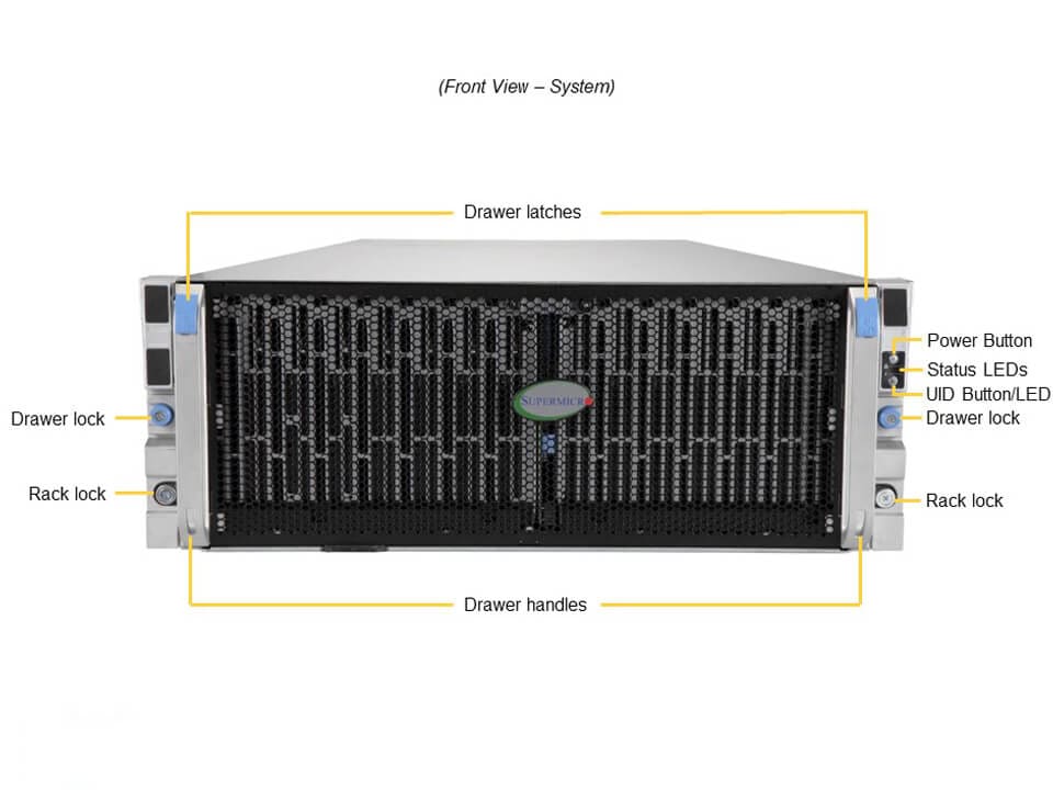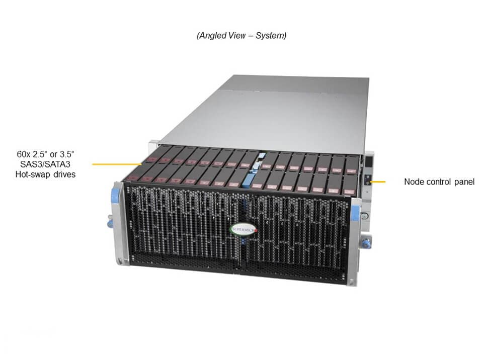 4. 60 3.5"/2.5" Hot-swap SAS3/SATA3 drives, 2x Fixed slim SATA SSD, 2x NVMe M.2 (form factor: 2280 and 22110)