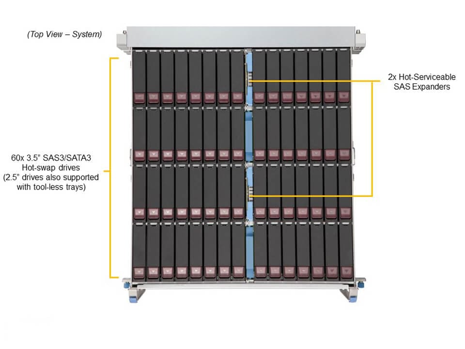 • 60 top-loading hot-swap 3.5"/2.5" SAS/SATA drive bays