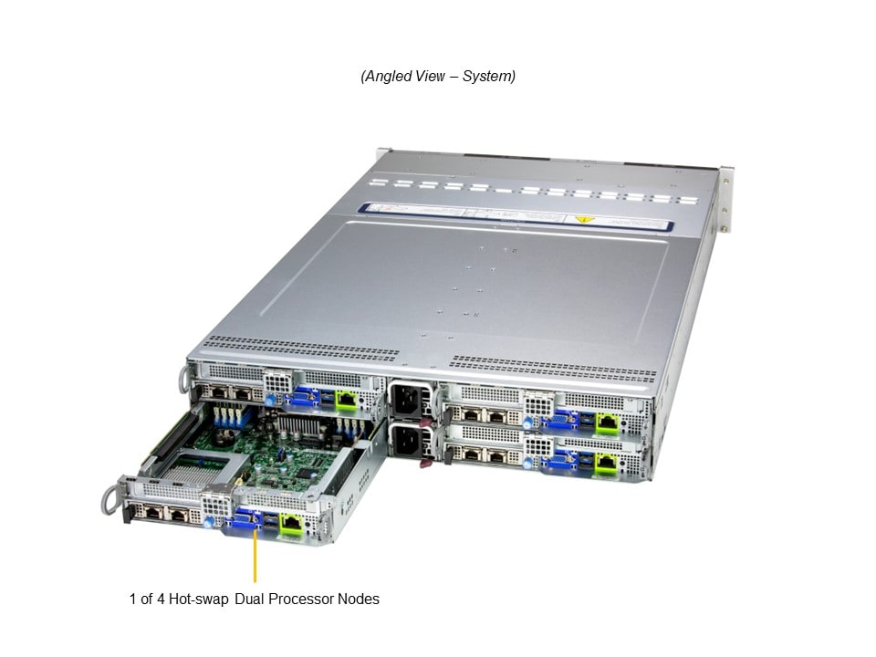 2U 4-Node BigTwin with 6 hot-swap 2.5" NVMe/SAS/SATA drives per node