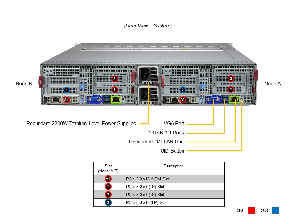 • 1 PCIe 5.0 x16 AIOM slot (OCP 3.0 compatible)