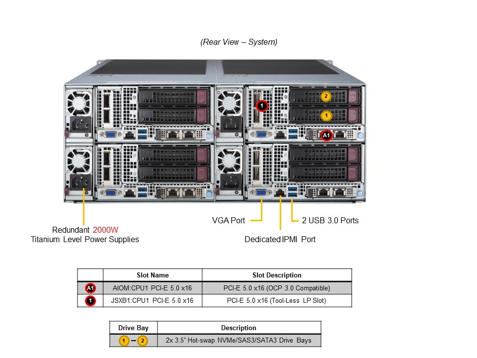 • 2 rear hot-swap 3.5" NVMe/SAS/SATA drive bays
