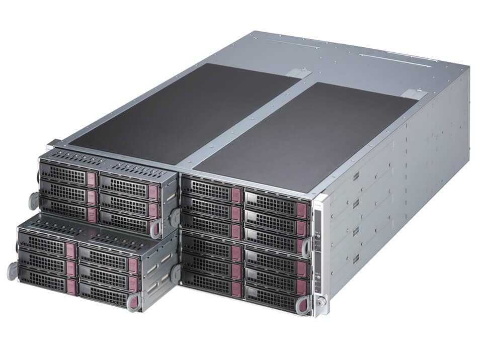 4U 4-Node FatTwin with 8 hot-swap 3.5" NVMe/SAS/SATA drives per node