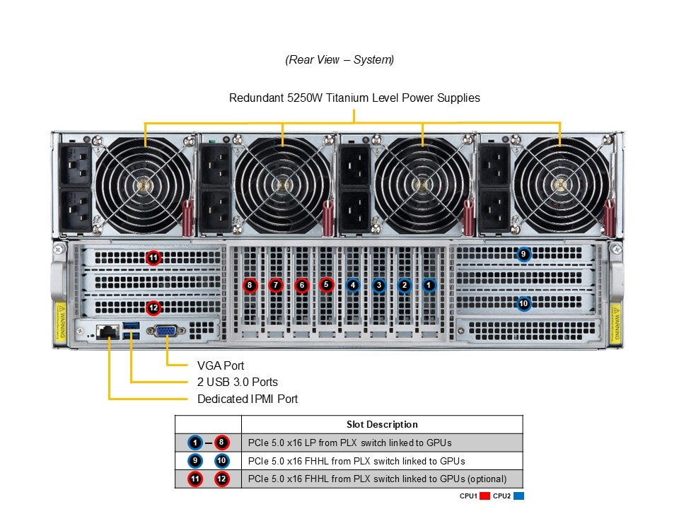 4. 8 PCIe 5.0 x16 LP slots, 2 PCIe 5.0 x16 FHHL slots, 2 PCIe 5.0 x16 FHHL slots (optional)