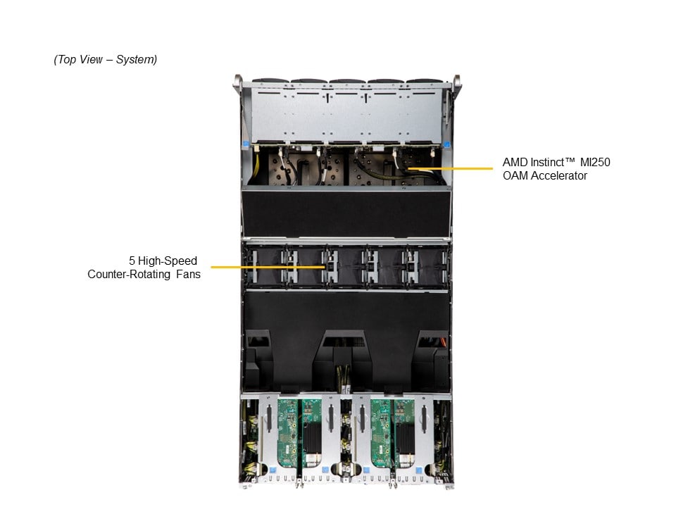 1. Supports AMD Instinct™ MI200 Series Accelerators with AMD Infinity™ Fabric™ GPU-GPU Interconnect, 1:1 GPU-to-NIC ratio