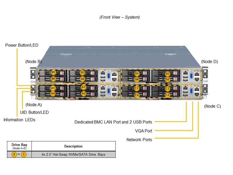 Key FeaturesFour hot-pluggable systems (nodes) in a 2U form factor. Each node supports the following: