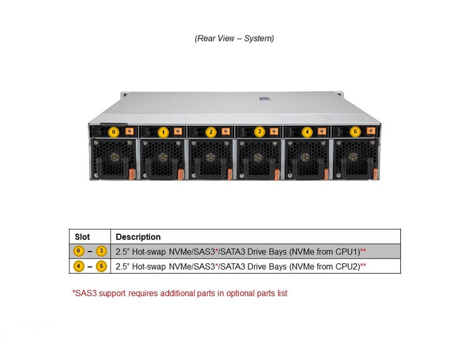 5. Up to 6x 2.5" hot-swap drive bays with options to support NVMe/SATA drives