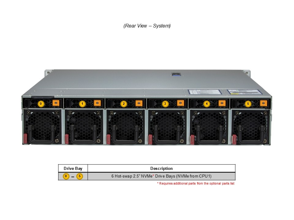 • 6 rear hot-swap 2.5" PCIe 5.0 x4 NVMe drive bays