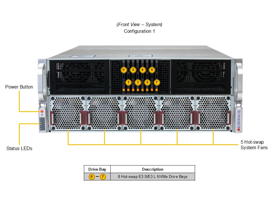 • 8 front hot-swap E3.L 1T PCIe 5.0 x4 NVMe drive bays