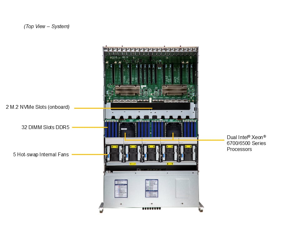 1. Dual Socket E2 (LGA-4710) Intel® Xeon® 6700/6500-series processors with P-cores up to 350W with air cooling