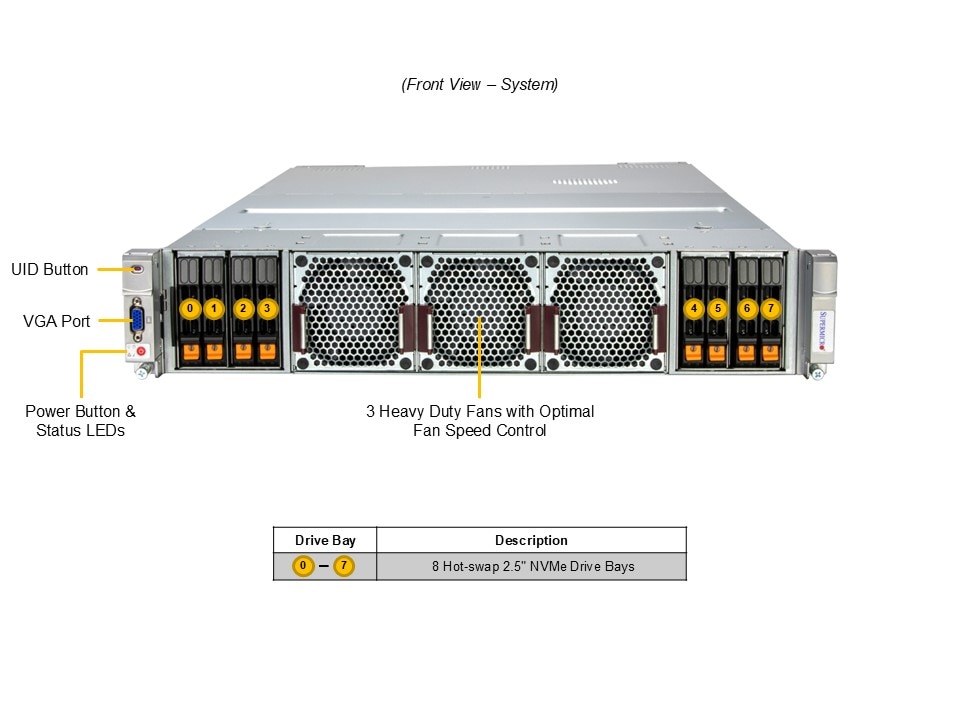 6. Up to 8 front hot-swap 2.5" NVMe drive bays