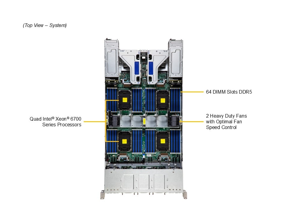 1. Quad Intel® Xeon® 6700-Series Processors with P-cores up to 350W with air cooling