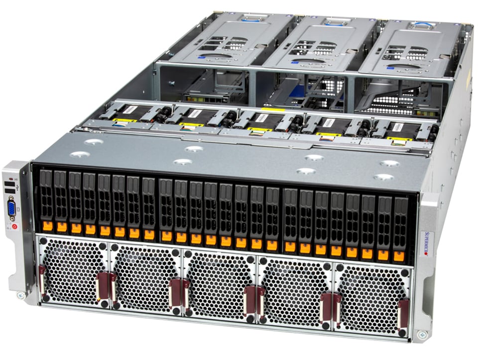 4U 4-socket system with 64 DIMMs and 24 NVMe/SAS/SATA drive bays