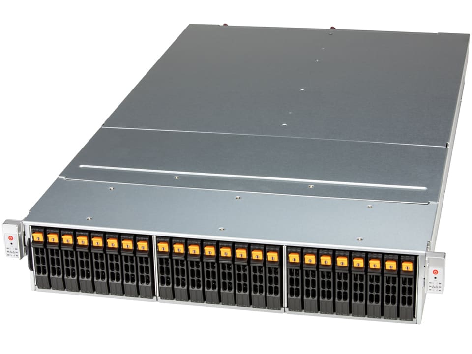 2U front-loading all-flash Modular Bluefield-3 based SDS Storage enclosure with 24 hot-swap 2.5" NVMe bays and PCIe 5.0 with GPU/DPU support for LLM applications