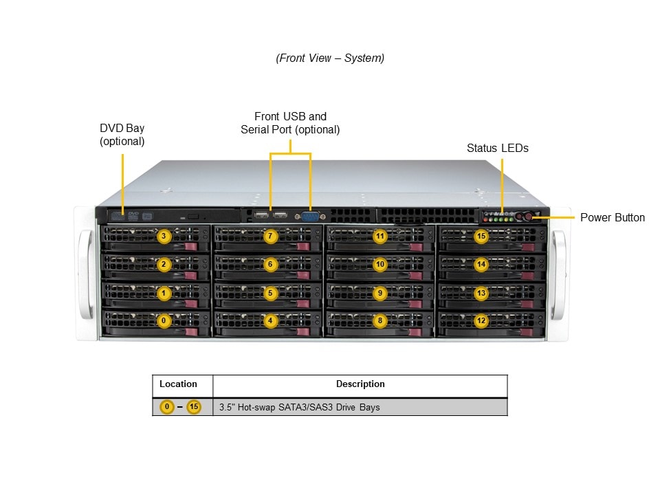 • 16 front hot-swap 3.5" SAS/SATA drive bays