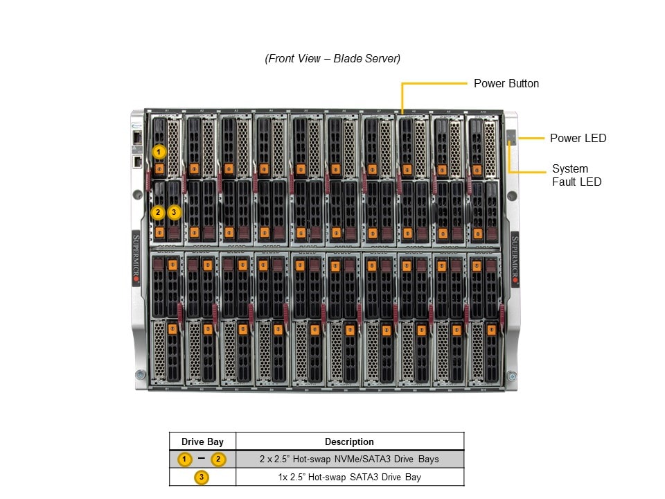 6. 2 Hot-plug 2.5" NVMe/SATA3 drive bays; 1 Hot-Plug 2.5" SATA3 drive bay, 1 NVMe M.2