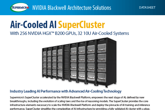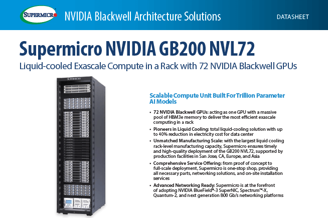The Proven Platform for Large-Scale AI Workloads, Upgraded with Ultra Performance: Now featuring NVIDIA Blackwell Ultra, Supermicro’s NVIDIA HGX B300 solutions enable rapid deployment of the industry’s highest-performing AI infrastructure to tackle the largest-scale AI training, real-time AI reasoning, agentic AI applications, multimodal AI inference, and physical AI applications.