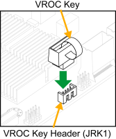 A VROC RAID Key header is located at JRK1 on the X14DBG-GD motherboard. Install a VROC RAID key on JRK1 for NVMe RAID support as shown in the illustration below.