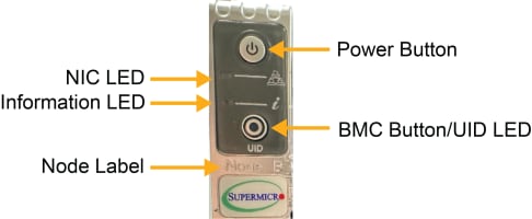BMC button: Resets the BMC firmware when pressed Unit Identification (UID) button: Powers the blue indicator of the Information LED and a blue LED on the rear of the chassis; used to locate the server in large racks and server banks |