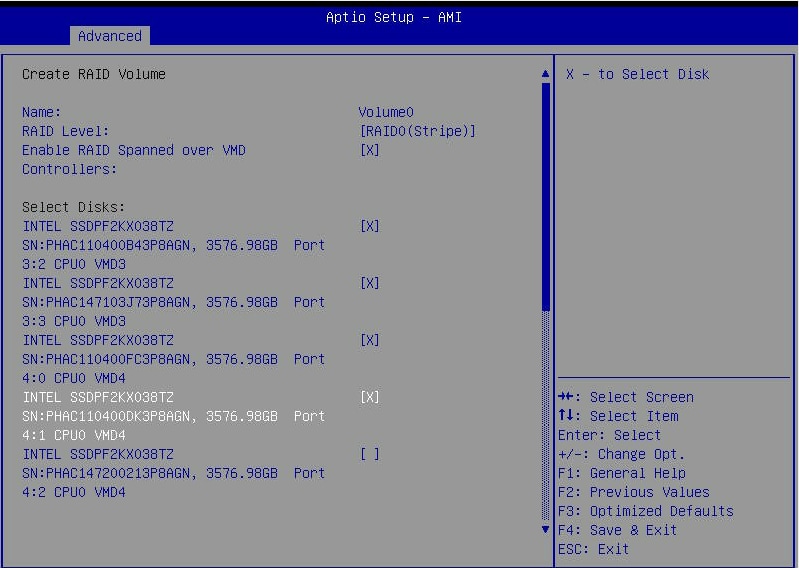 If cross-controller RAID is required, select Enable RAID spanned over VMD Controller.