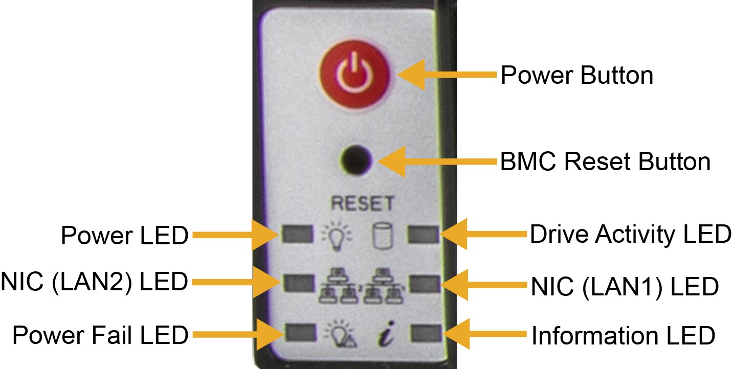 The following switches and LEDs are located on the SYS-212B-N2T server control panel.