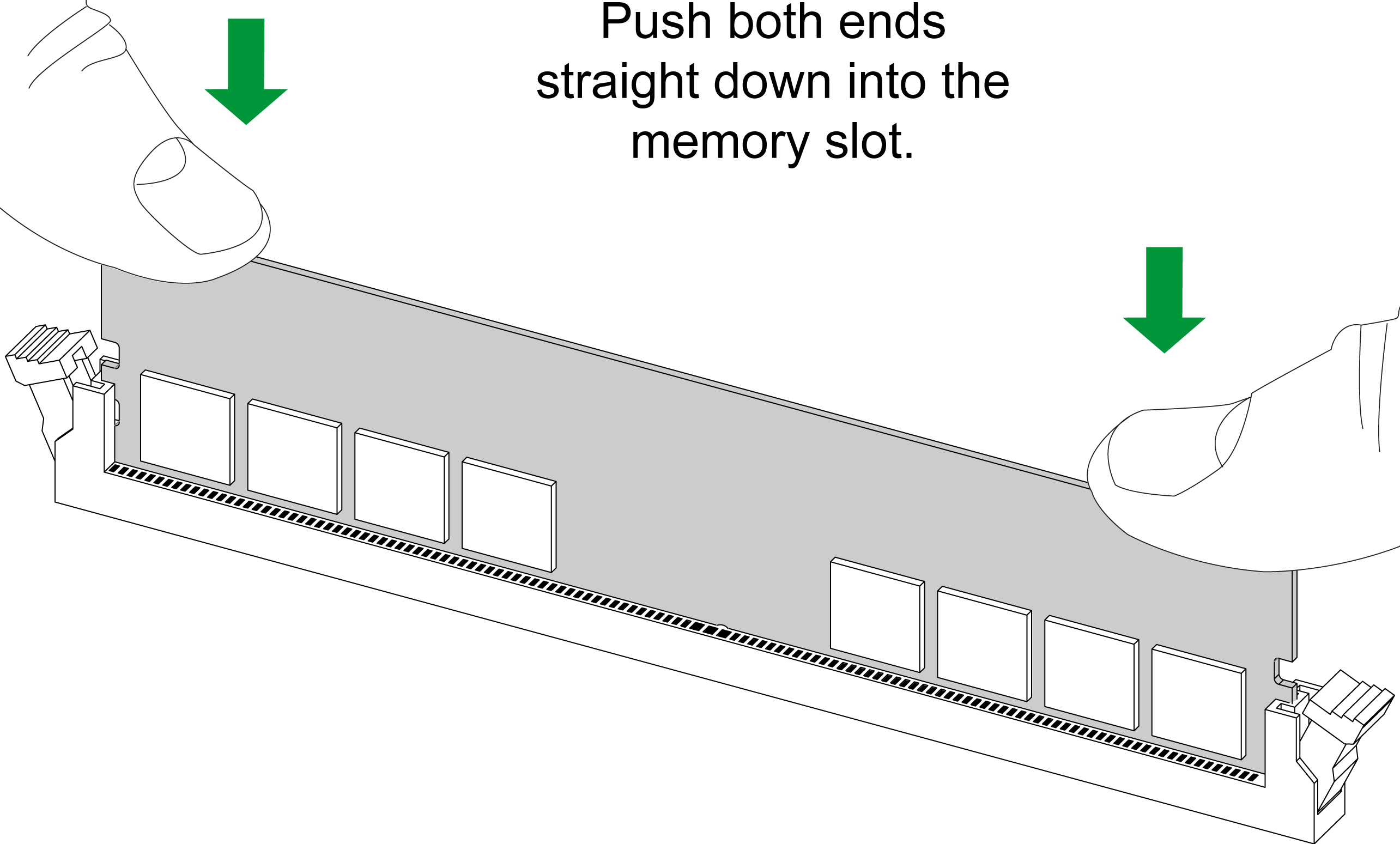Press both ends of the module straight down into the slot until the module snaps into place.