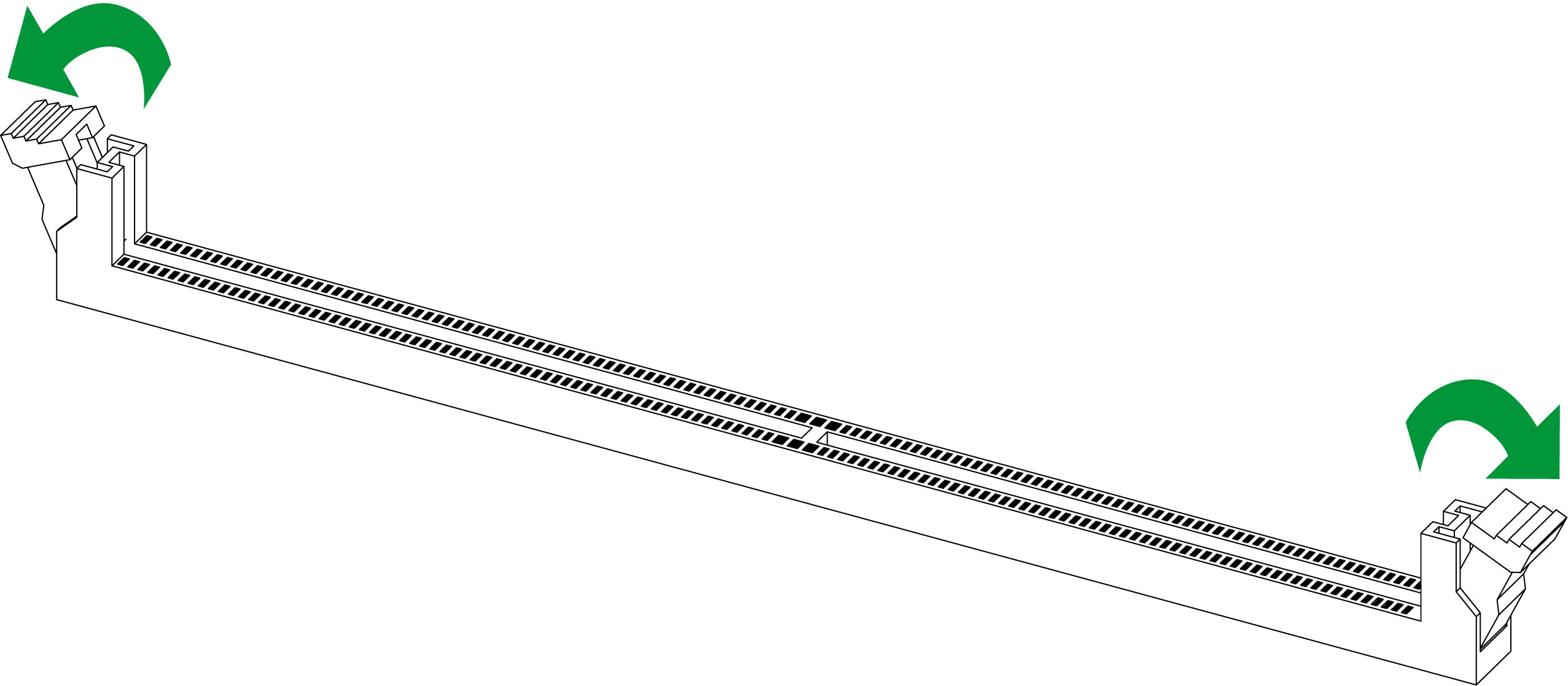 Push the release tabs outwards on both ends of the DIMM slot to unlock it.