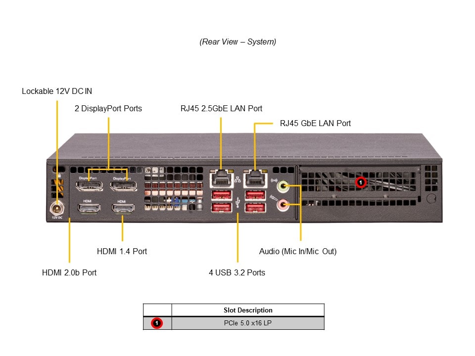 • 1 PCIe 5.0 x16 (in x16) LP slot