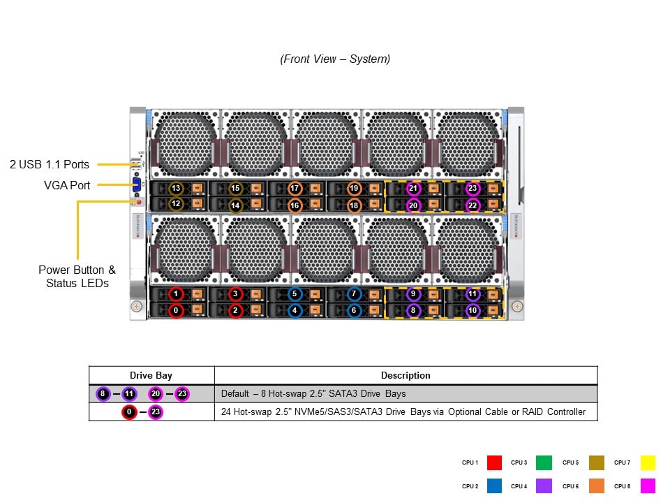 4. 24x 2.5" Hot-swap NVMe/SAS3/SATA3 drive bays ; 2x internal M.2 NVMe/SATA; Optional RAID support via storage add-on card