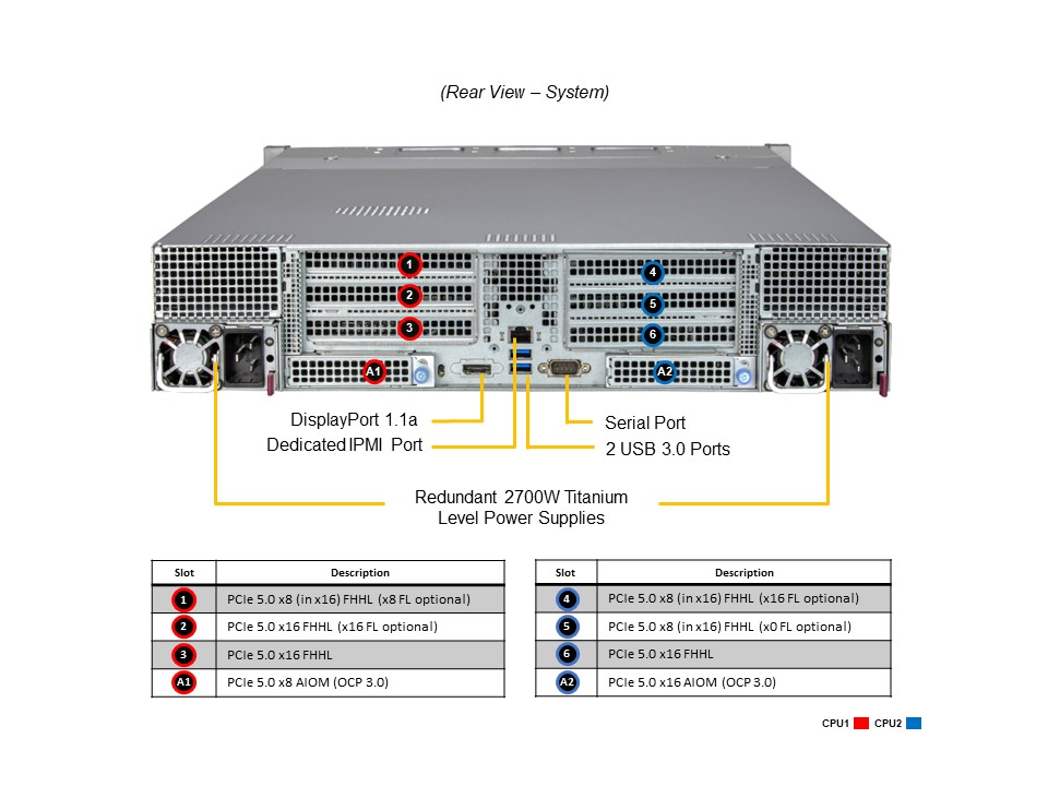 • 1 PCIe 5.0 x16 AIOM slot (OCP 3.0 compatible)