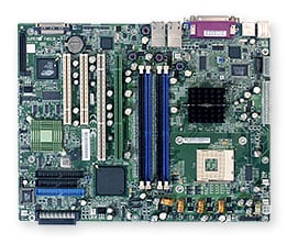 |  | | SKU | | | |  |  | | Form Factor |  | ATX |  | | Dimensions |  | 12" x 9.5", (30.5cm x 24.1cm) |  |  |  | | CPU |  | Single mPGA478 ZIF Sockets Supports an Intel® Pentium® 4 processor with 2MB of integrated Advanced Transfer Cache up to 3.4GHz (Extreme Edition) Supports an Intel® Pentium® 4 processor with 1MB of integrated Advanced Transfer Cache up to 3.2GHz Supports an Intel® Celeron® processor with 128KB of integrated Advanced Transfer Cache up to 2.8GHz Hyper-threading enabled |  | | System Bus |  | 800 / 533 / 400MHz system bus |  |  |  | | Memory Capacity |  | Four 184-pin DIMM sockets Supports up to 4 GB of DDR400/333/266 memory Dual channel memory bus Memory must be populated in pairs |  | | Memory Type |  | DDR400/333/266 (ECC or non-ECC) unbuffered SDRAM, 184-pin gold-plated DIMMs |  | | DIMM Sizes |  | 128MB, 256 MB, 512 MB, 1 GB |  | | Memory Voltage |  | 2.5 V only |  |  |  | | Chipset |  | Intel® E7210 (Canterwood ES) chipset MCH + 6300ESB + FWH |  | | SCSI |  | Adaptec AIC-7902 Controller Dual-Channel Ultra320 SCSI |  | | RAID |  | Support for Zero-Channel RAID Optional: (Card not included) |  | | Serial ATA |  | SATA Controller on-chip (Intel® 6300ESB) Dual Serial ATA ports RAID 0, 1 Supported |  | | Network Controllers |  | 1x Intel® 82547GI CSA Gigabit Ethernet Controller 1x Intel® 82541 Gigabit Ethernet Controller Supports 10BASE-T, 100BASE-TX, and 1000BASE-T, RJ45 output |  | | Graphics |  | ATI Rage XL SVGA PCI video controller with 8 MB of video memory |  |  |  | | PCI Expansion |  | 2x 64-bit 66MHz PCI-X (3.3V) slots 2x 32-bit 33MHz PCI (5V) slots |  | | IDE |  | Dual EIDE channels support up to four UDMA IDE devices Supports UDMA Mode 5, PIO Mode 4, and ATA/100 |  | | Floppy |  | 1x Floppy controller; 1.44 MB, 2.88 MB, 3-mode support |  | | USB |  | 2x USB 2.0 / 1.1 ports 1x USB header supports additional 2x USB 2.0 / 1.1 ports) |  | | Serial Ports |  | 2x Fast UART 16550 serial ports |  | | VGA Port |  | 1x VGA Port |  | | Parallel Port |  | 1x ECP/EEP Parallel Port |  | | LAN Port |  | 2x RJ45 Ports |  | | Keyboard / Mouse |  | PS/2 keyboard and mouse ports |  | |  |  |  | | 1U Chassis |  | SC813MS-300C |  | | 2U Chassis |  | SC822S-400LP |  | | Rackmount Tower / 4U |  | SC742S-420 |  | | Important Note |  | To ensure system stability, a 300W (minimum) ATX power supply [4-pin +12V AND (20 or 24-pin)] is required. |  |  |  | | BIOS Type |  | 8Mb Flash EEPROM with AwardBIOS® |  | | BIOS Features |  | Plug and Play (PnP) APM 1.2 DMI 2.3 support PCI 2.3 ACPI 1.0 BIOS rescue hot keys Hardware BIOS virus protection USB Keyboard support |  |  |  | | Software |  | SuperDoctor® III Watch Dog |  | | Power Configurations |  | ACPI/APM Power Management Main Switch Override Mechanism Wake-On-Ring (WOR) header Wake-On-LAN (WOL) header Suspend to RAM (STR) Power-on mode control for AC power loss recovery Internal/External modem remote ring-on |  |  |  | | Voltage |  | Monitors for CPU Cores, +3.3V, +5, ±12V, +3.3V/+5V Standby, VBAT CPU Core 3-Phase-switching voltage regulator w/ auto-sense from 0.85V-1.65V Adjustable CPU clock frequency ratio settings (via BIOS) |  | | FAN |  | Total of five 3-pin fan headers 3x fans with tachometer monitoring Status monitor with firmware/software on/off control |  | | Temperature |  | Monitoring for CPU, chassis, environment CPU thermal trip support |  | | LED |  | CPU Overheat LED System Overheat LED +5V standby alert LED Suspend-state indicator LED |  | | Other Features |  | Chassis intrusion detection Chassis intrusion header |  | |