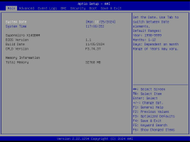 The Main setup screen appears when the AMI BIOS Setup utility is first entered. To return to the Main setup screen, select the Main tab at the top of the screen. The Main BIOS setup screen is shown below.