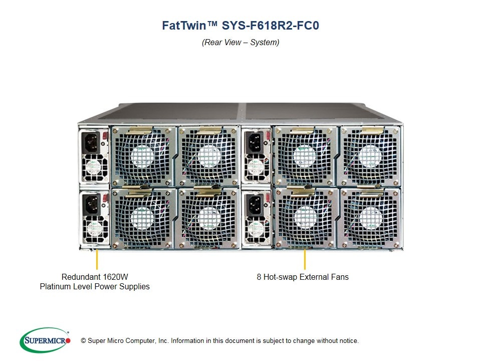 Fat Twin 中间平面;支持 2 个电源供应器;4 个主板热插拔及过流连接;前面板连接与 4 个 PWM 风扇控制