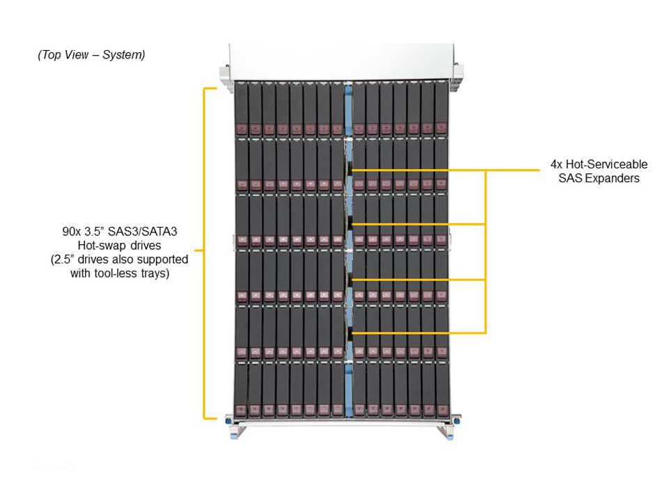 4. 90 3.5"/2.5" Hot-swap SAS3/SATA3 drives (Each node controls 45 drives)
