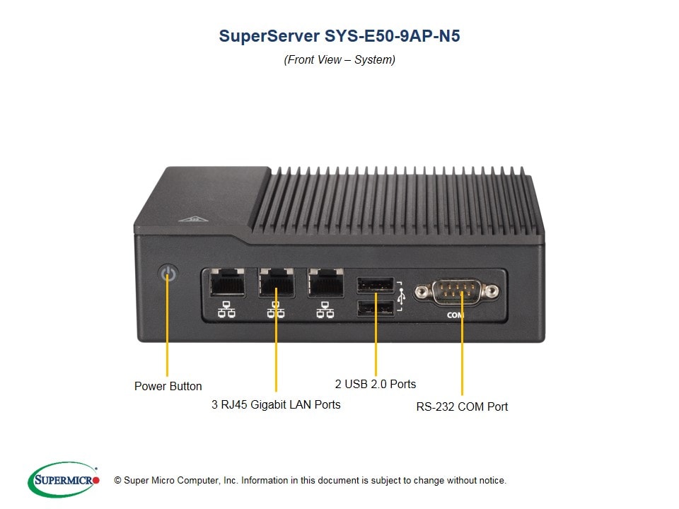1 M.2 E-Key 22306. 5 LAN with Intel I210-IT7. 2 USB 3.0, 2 USB 2.0, 1 COM, 2 HDMI,