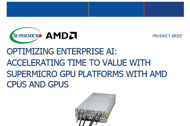 本報告深入分析了完整的 AI 解決方案,該解決方案包含部署在 Supermicro H14 應用優化伺服器平台上的 AMD Instinct™ MI355X GPU,並得出結論,此組合為關鍵企業工作負載提供了領先的效能,並加速了價值實現時間,直接解決了當今企業 IT 領導者面臨的最緊迫挑戰。